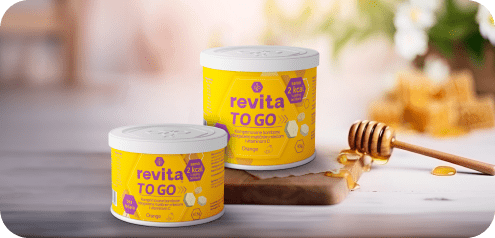 Komprimovane bombone, obogaćene matičnim mlečom i vitaminom C, nastale su kao odgovor na potrebe ljudi koji su često u pokretu. U pitanju je alternativa za klasične bombone, prijatnog ukusa narandže, bez šećera, sa samo 2 kcal u jednoj bomboni. Namenjene su svima koji su slabi na „slatkiše“ ali uz Revita TO GO mogu da uživaju bez griže savesti.
